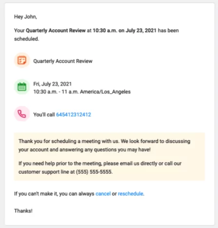 Include an Agenda (if applicable): If you have a specific agenda or topics to cover, include them in your confirmation. This helps participants come prepared.